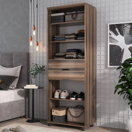 Armário multiuso e multi-ambiente, possui 2 gavetas com abertura total devido as corrediças telescópicas de ótima qualidade e 4 prateleiras internas, sendo 3 delas móveis e apenas a do meio fixa. Muito comumente é utilizado como sapateira, guarda-roupa infantil, para guardar mantimentos, produtos de limpeza ou no escritório.
