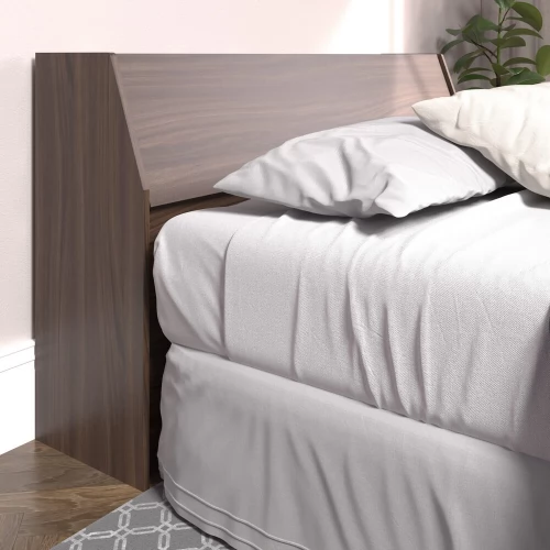 Cabeceira com baú 1 porta articulada e prateleira para objetos com mini-frame para box de casal 138x188 cm.