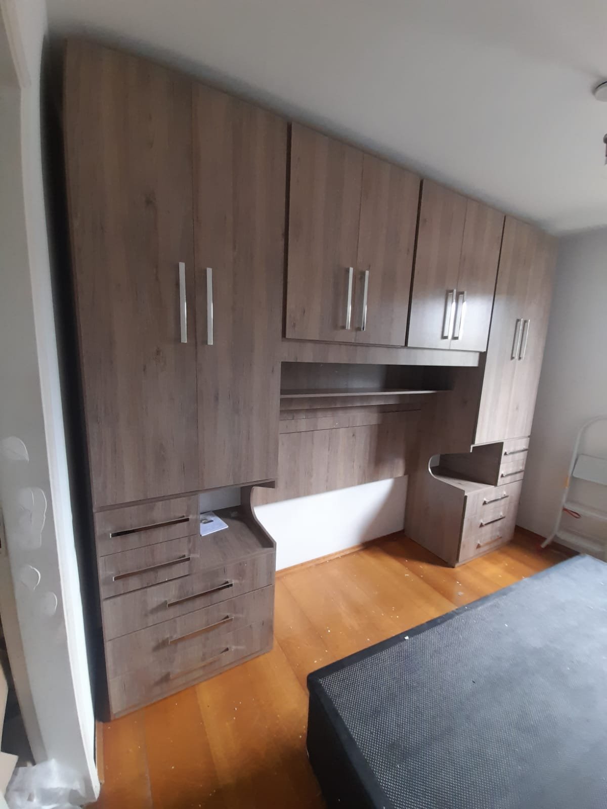 | Itens inclusos | 02 Guarda-roupas de 2 portas e 5 gavetas com mesa de cabeceira embutida modelo 1224,01 Maleiro queen size 4 portas modelo 1226 e kit de ferragens. |