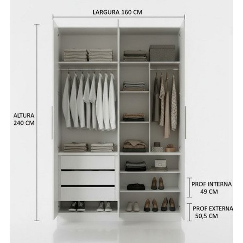 Dimensões (A x L): 240 cm x 160 cm Profundidade Externa: 50,5 cm