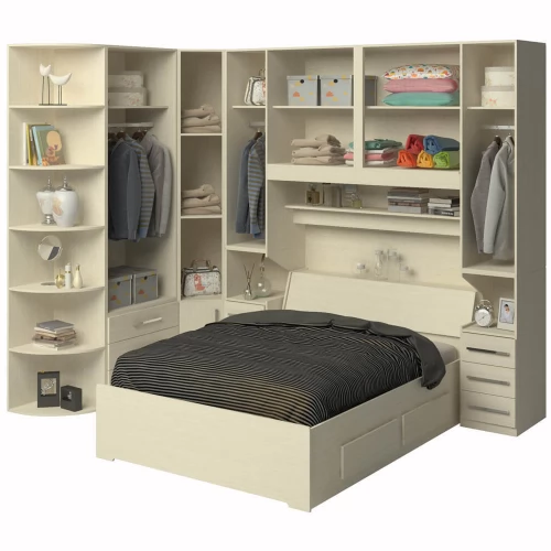 | Itens inclusos | 02 Guarda-roupas de 1 porta e 3 gavetas com mesa de cabeceira modelo 1416,01 Maleiro queen size 4 portas modelo 1226,01 Armário de Canto modelo 1231,01 Guarda-roupa de 2p e 3 gavetas modelo 1228,01 Cantoneira 1322,1 kit de ferragens. |