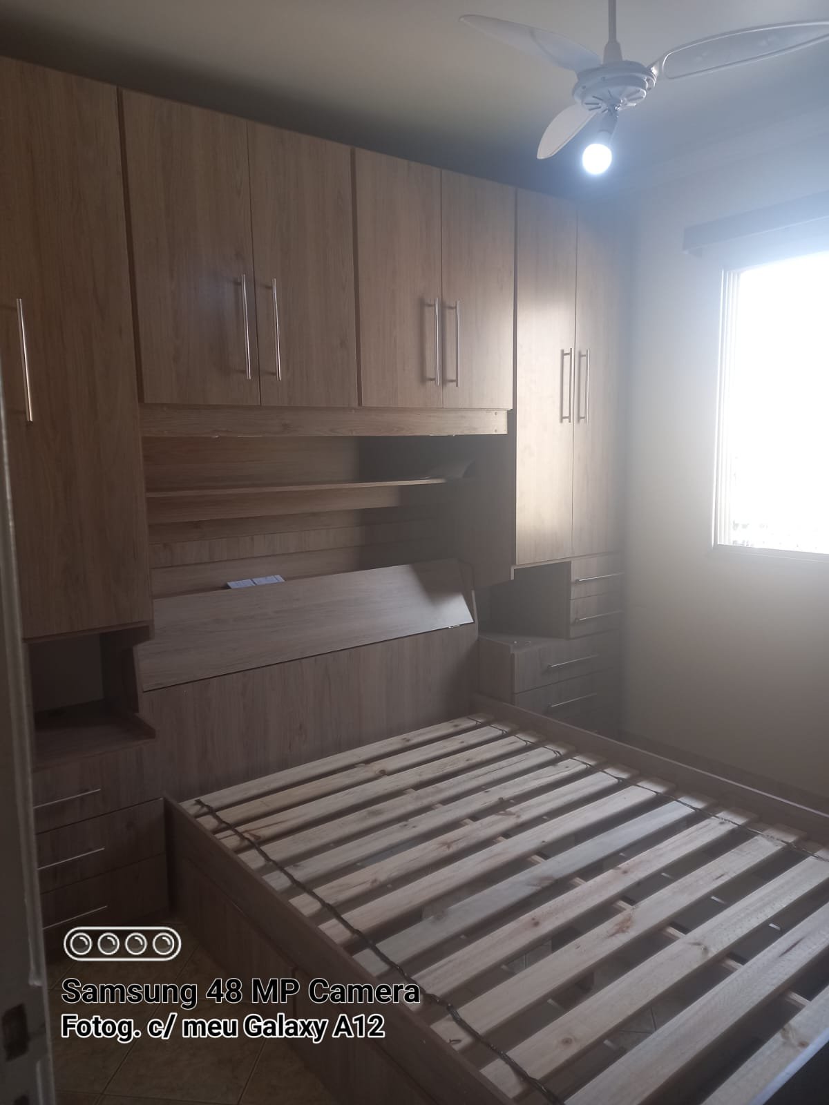 Dormitório de casal com cama embutida, versão mais simples, mas que de simples não tem nada: são 2 guarda-roupas com 10 gavetas no total, um maleiro de 4 portas bem espaçoso e com espaço interno para aproveitar seu cômoda da melhor forma.