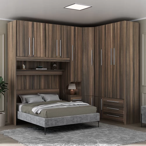 | Itens inclusos | 01 Guarda-roupa de e 3 gavetas modelo 1249,01 Armário de Canto Sextavado modelo 1231,01 Guarda-roupa de 1 porta e 3 gavetas com mesa de cabeceira embutida modelo 1416,01 Maleiro de casal 4 portas modelo 1226,01 Painel para cama Box de casal modelo 1217,kit de ferragens. |
