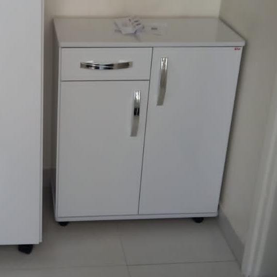 Balcão multiuso com 1 gaveta com corrediça metálica e 2 portas. Conta com 4 prateleiras internas, sendo duas maiores e duas menores ideias para guardar desde mantimentos até objetos pessoais. Ideal para sua residência ou estabelecimento comercial.