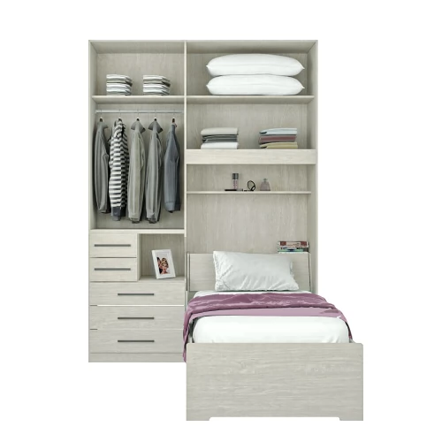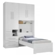 | Itens inclusos | 01 Guarda-roupas de 2 portas e 5 gavetas com mesa de cabeceira embutida modelo 1224,01 Maleiro 2 portas modelo 1221,kit de ferragens. |