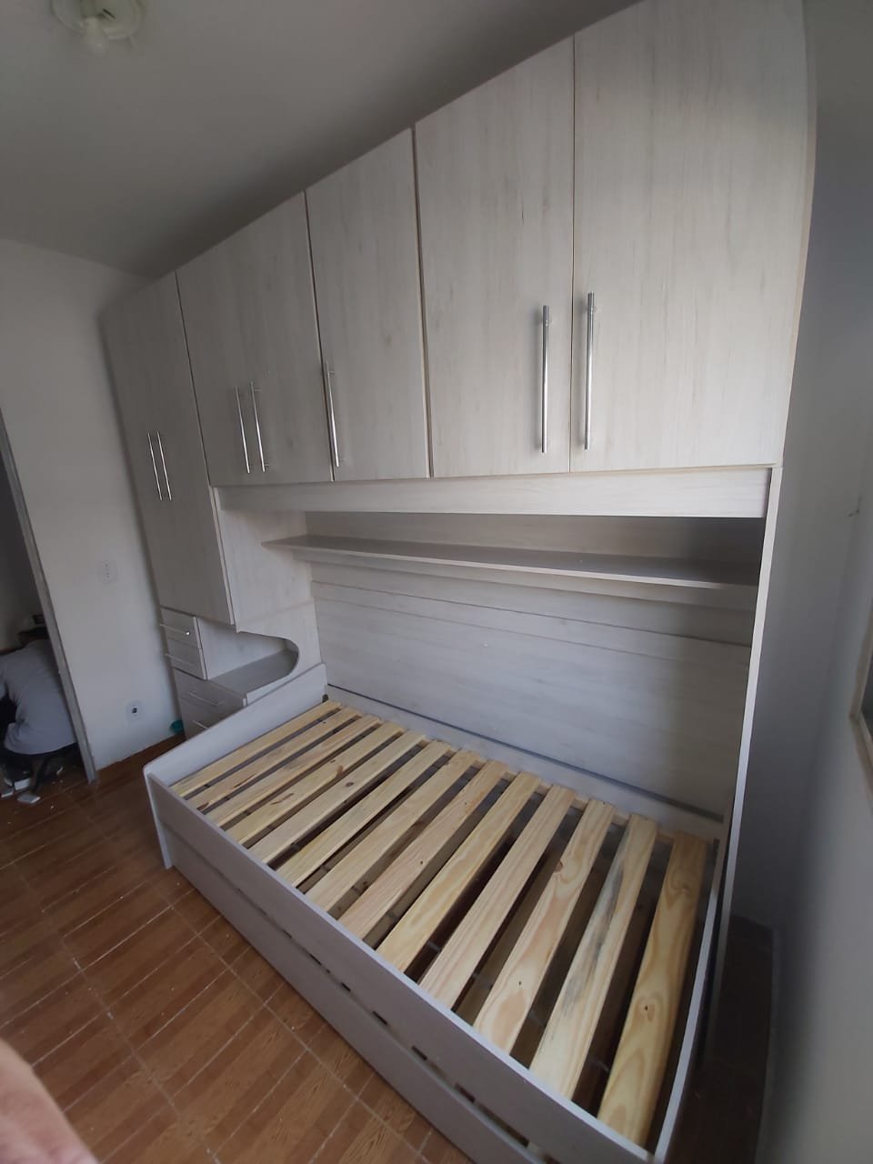 | Itens inclusos | 01 Guarda-roupas de 2 portas e 5 gavetas com mesa de cabeceira embutida modelo 1224,01 Maleiro 5 portas modelo 1326,01 Cama turca de solteiro para colchão 88x188 cm modelo 1329,01 cama auxiliar modelo 1250,kit de ferragens. |